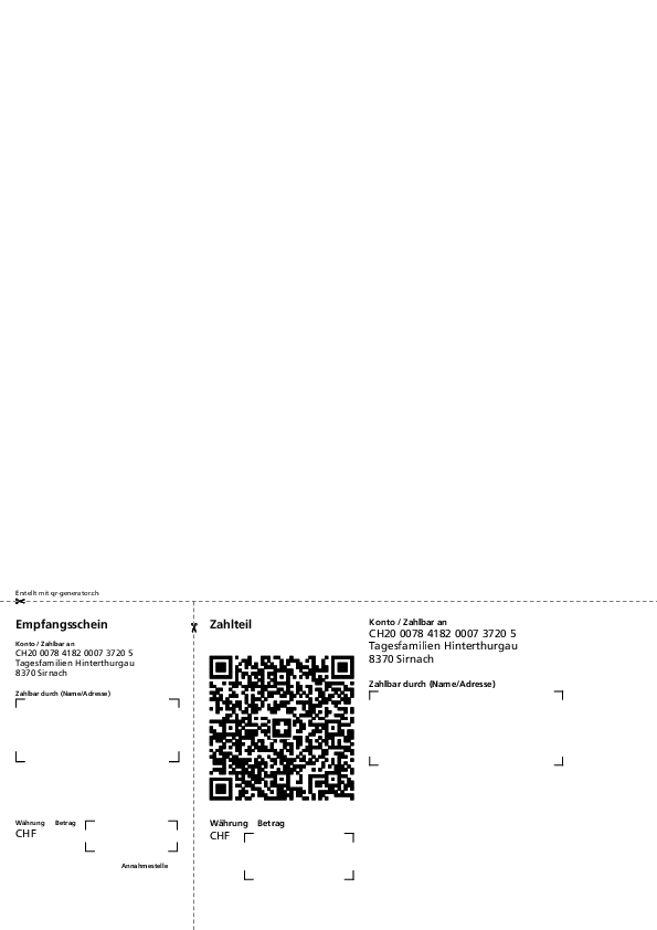 Thurgauer Kantonalbank Weinfelden, IBAN CH20 0078 4182 0007 3720 5,